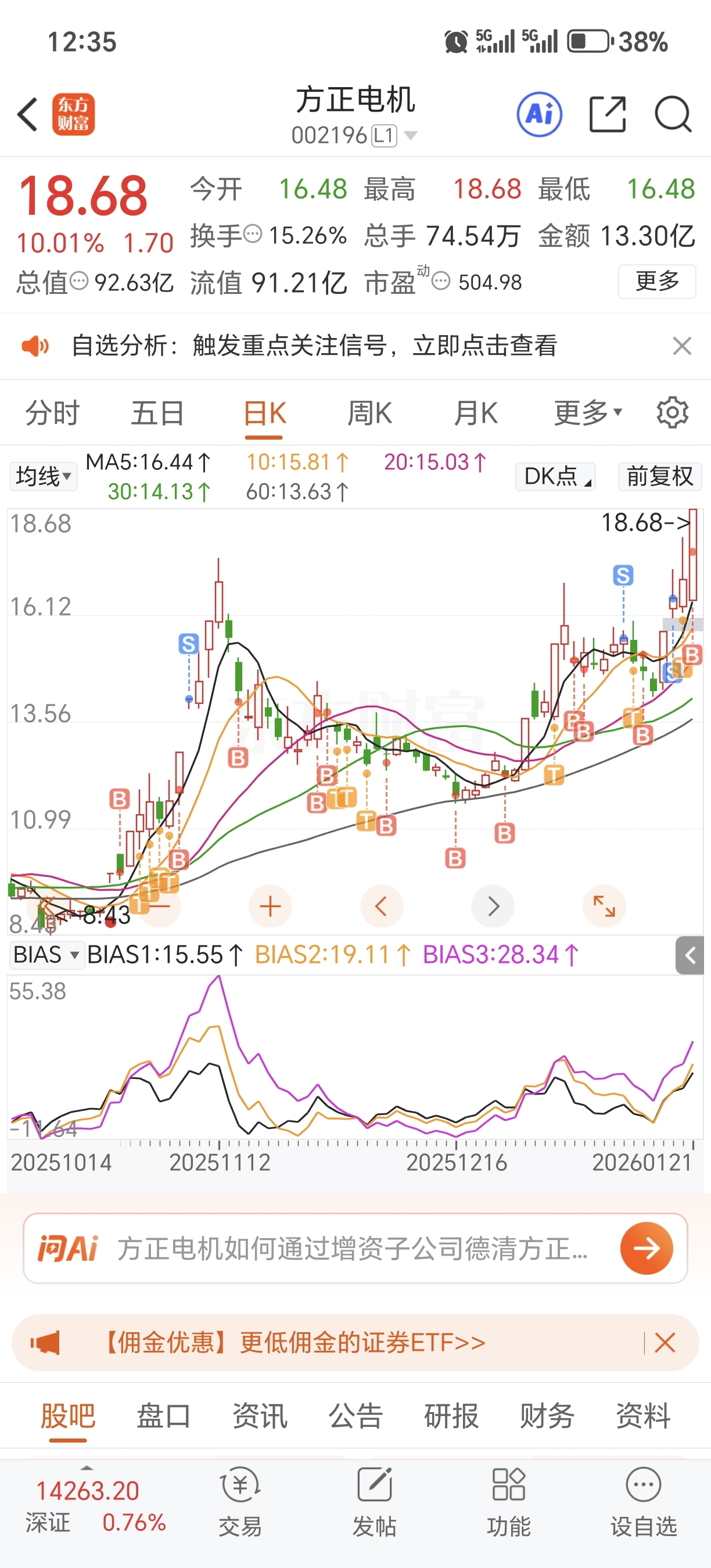 $方正电机(SZ002196)$ 这三天一直怕卖飞,小心翼翼的,结果把成本做高了(今天低开集合竞价没买进,追高进)。
