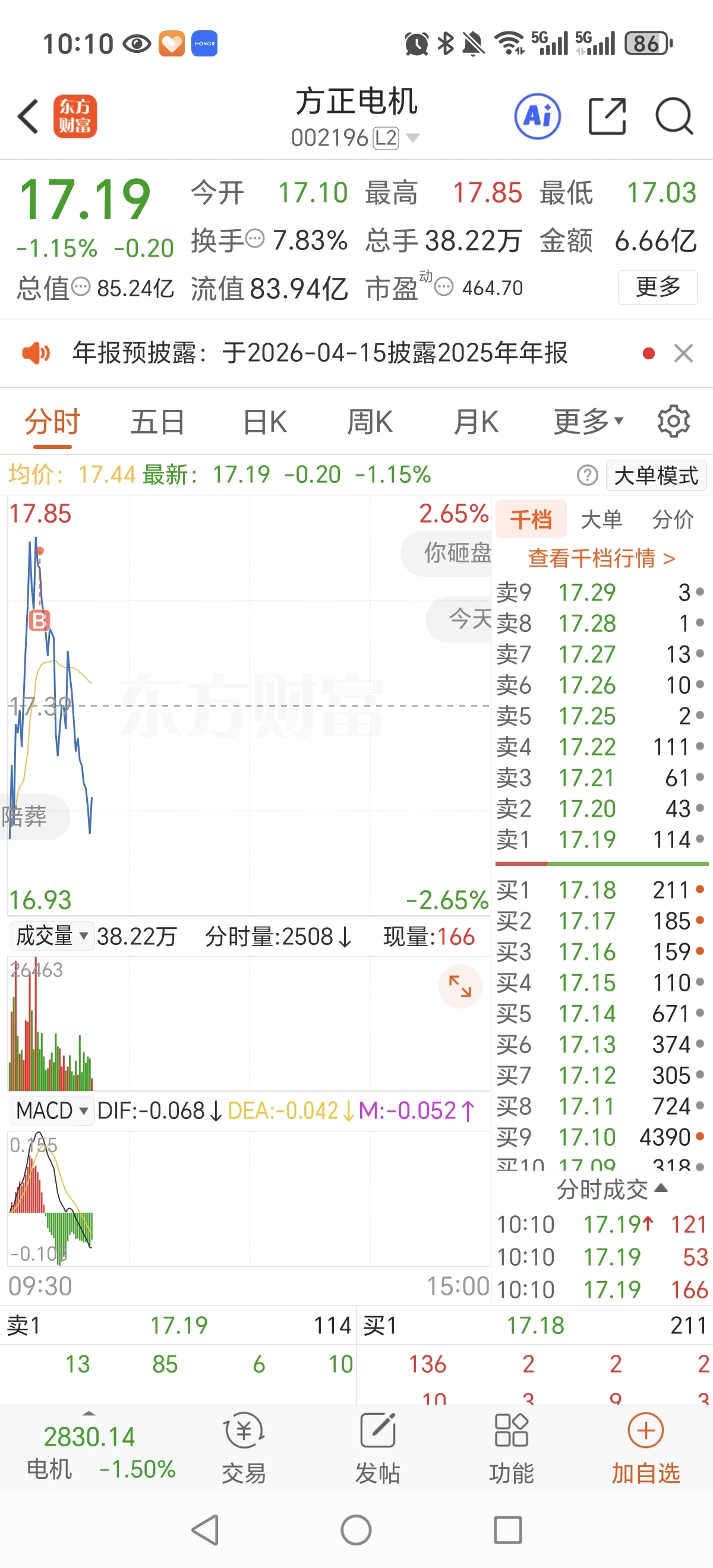 $方正电机(SZ002196)$ 本来想投机,这下变成长期股东了。