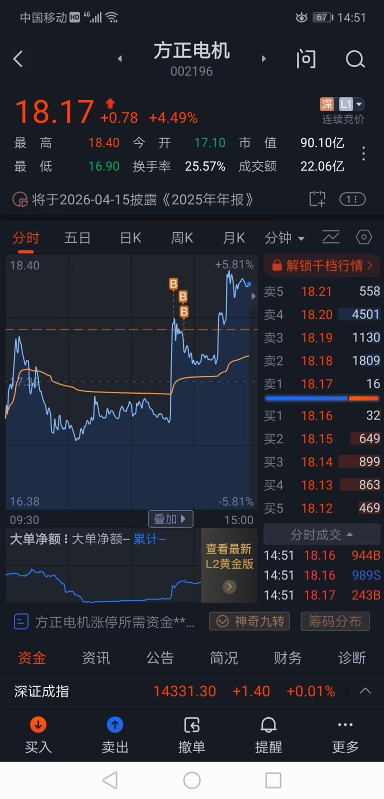 $方正电机(SZ002196)$ 今天出了拓日,建仓方正