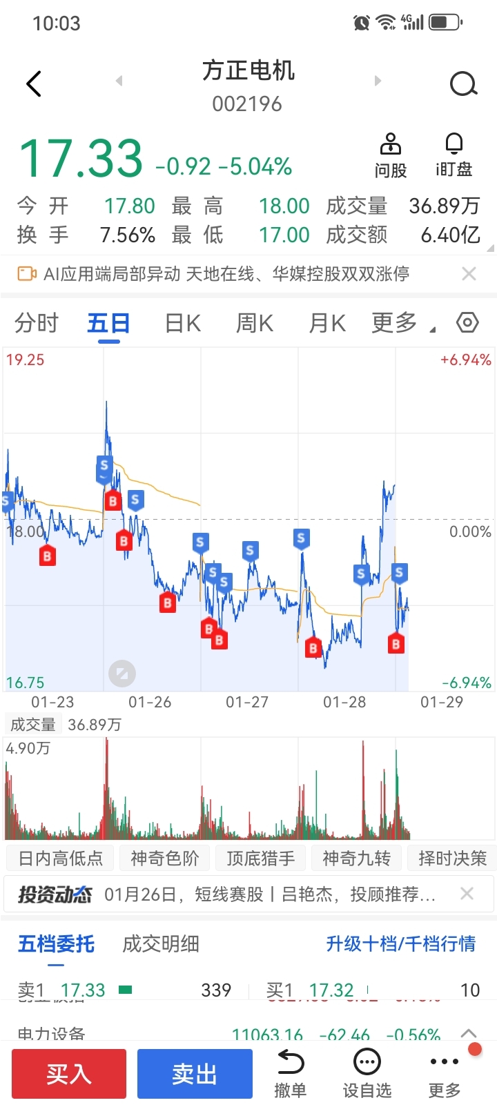 $方正电机(SZ002196)$ 早上又成功T一波,震荡行情以T为主,这几天做T唯一的失误,是昨天拉尾盘错误认为是转强信号选择格局了,错过了送来的红包。