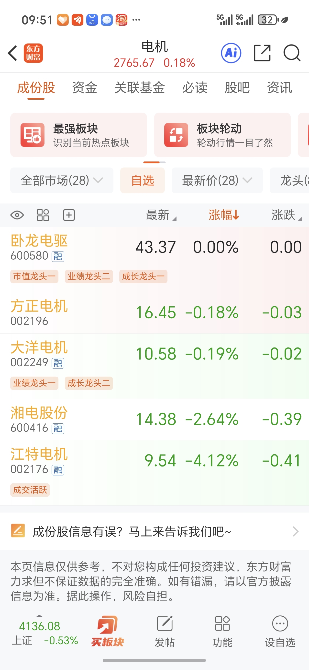 $方正电机(SZ002196)$ 兄弟们没招了,自选的电机全在跌,别的全红,明明这些是业绩正的股啊