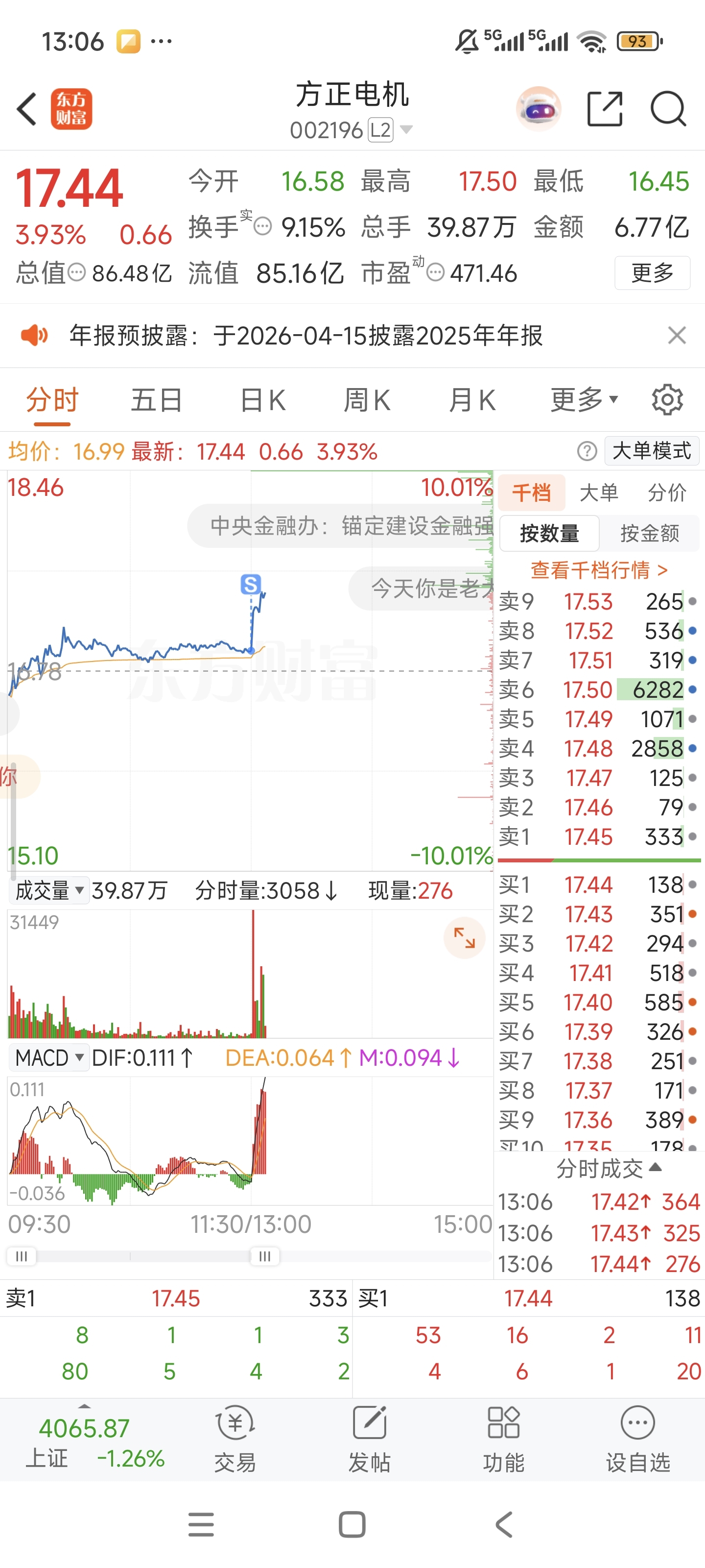 $方正电机(SZ002196)$ 就等着我呢是吧