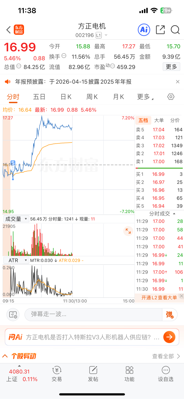 $方正电机(SZ002196)$ 吗的,亏七个点跑了,一卖就涨