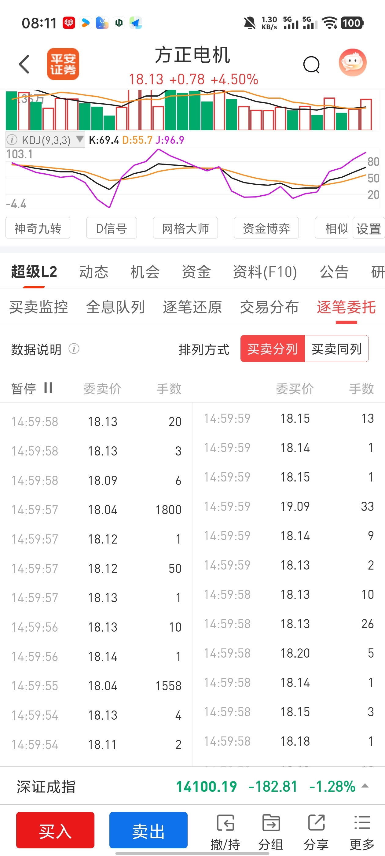 $方正电机(SZ002196)$ 尾盘卖出近万手