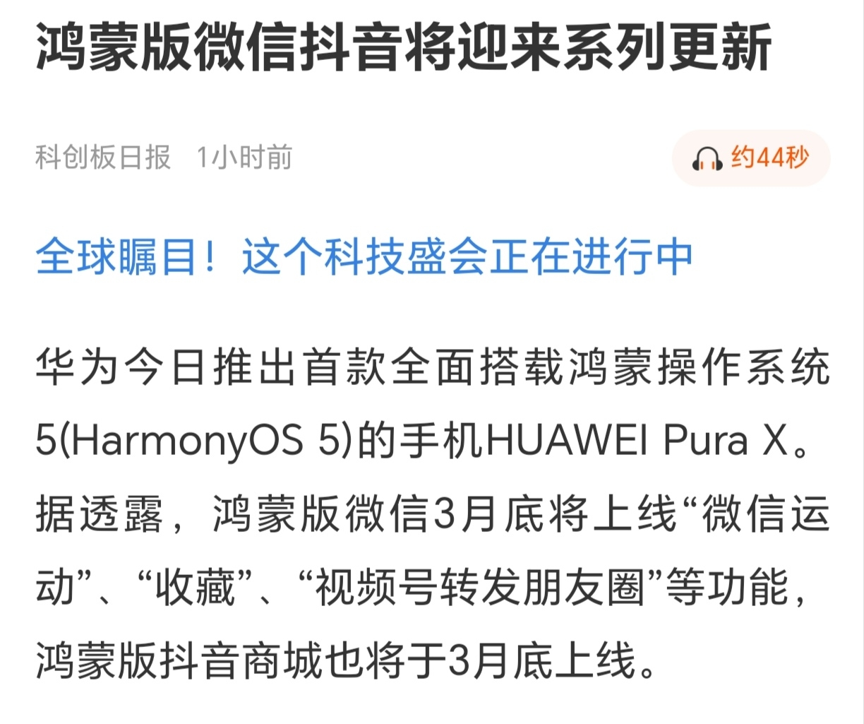 最新消息华为鸿蒙系统已经搞定微信和抖音,证开鸿抱紧你大哥