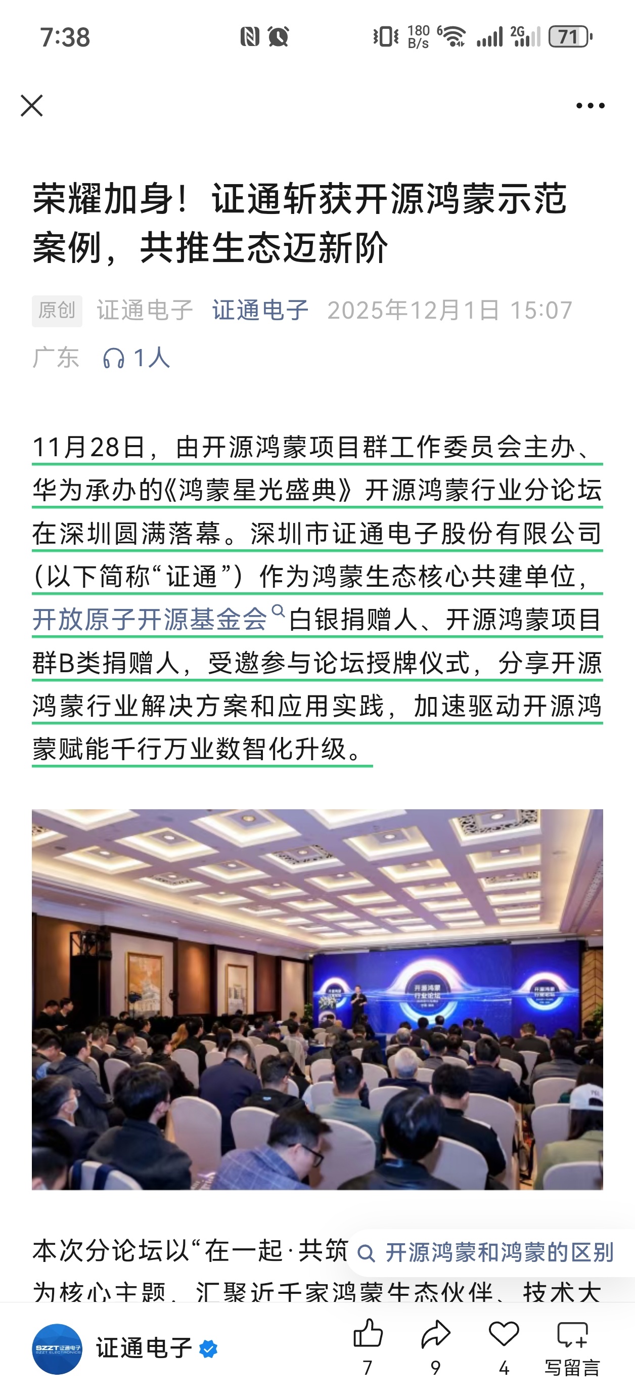 $ST证通(SZ002197)$ 11月28日,由开源鸿蒙项目群工作委员会主办、华为承办的《鸿蒙星光盛典》开源鸿蒙行业分论坛在深圳圆满落幕。