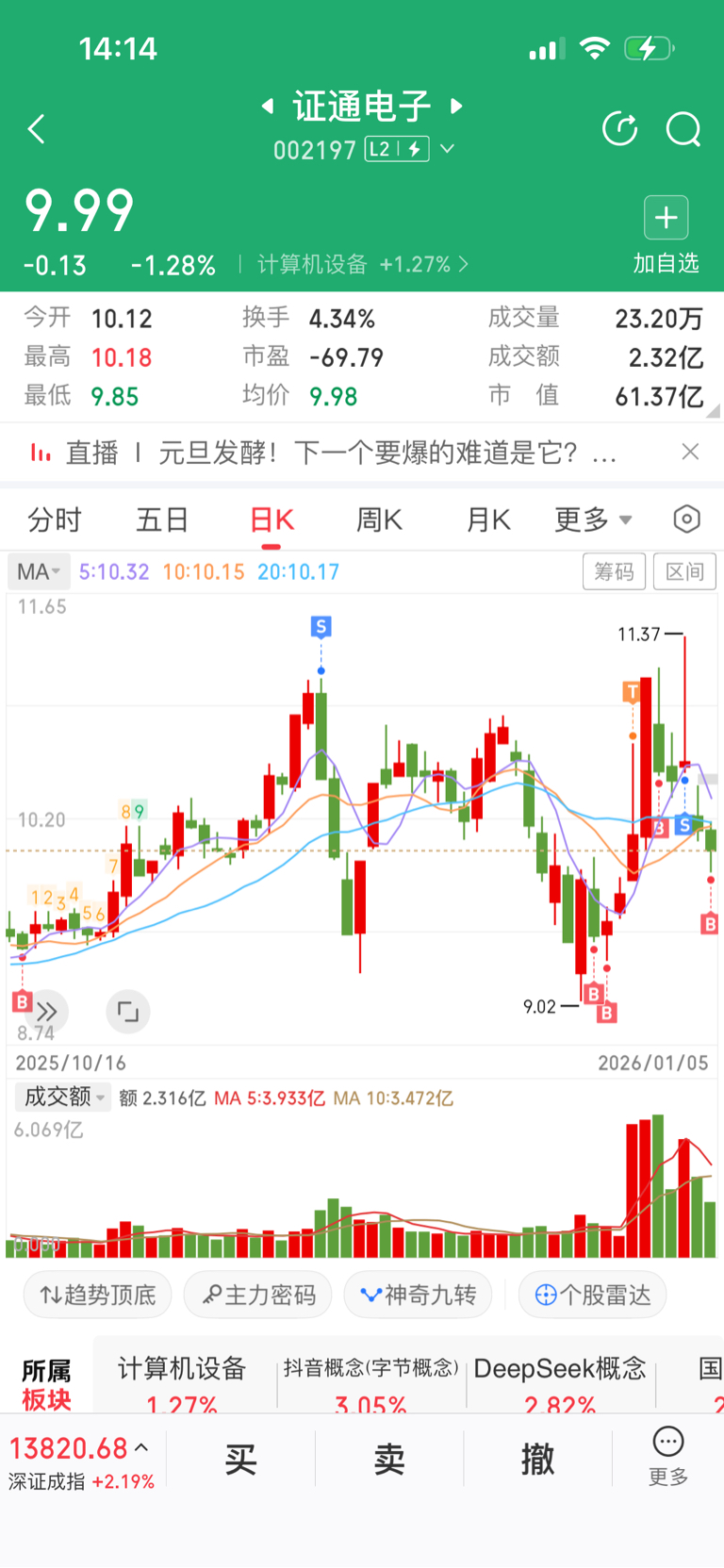 $证通电子(SZ002197)$ 又进来了
