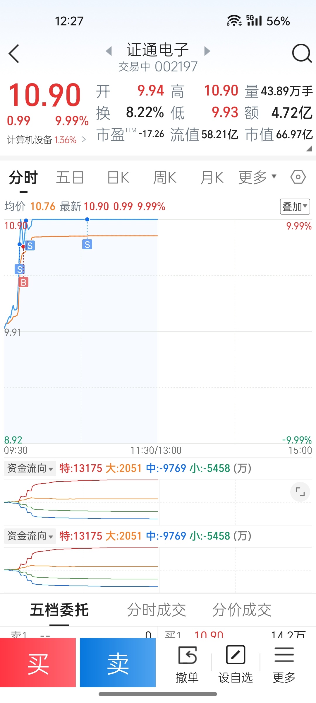 $证通电子(SZ002197)$ 昨天己讲,此股尿性,1个涨仃己很好,未试过2个涨仃,今天要跌4个点后再拉高。因离5日线太远。好在昨天涨仃扳减仓。今天跌4个点后再看看是否加仓?