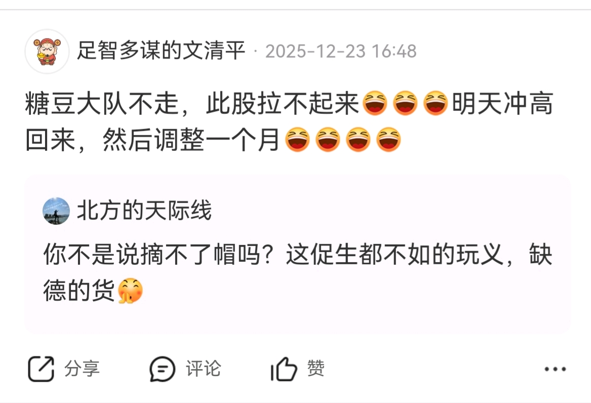 本人摘帽前几天就说了,摘帽后至少要调整一个月,可惜一群糖粉天涨到60元,哎