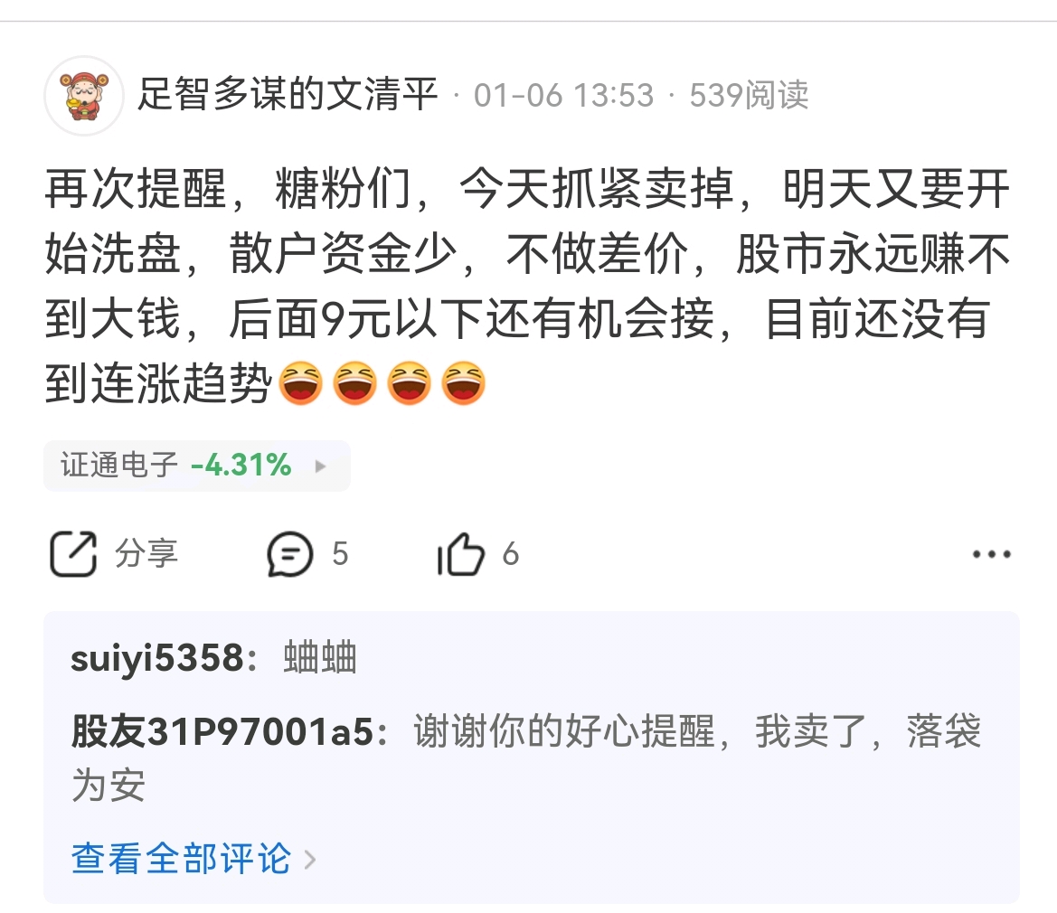 $证通电子(SZ002197)$ 依然坚持自己的观点,此股目前只适合做高低切换差价,不要指望大涨,糖糖不卖,此股不会大涨,很早之前就说过,可惜一群糖粉骂我骗筹码,同意我的点赞
