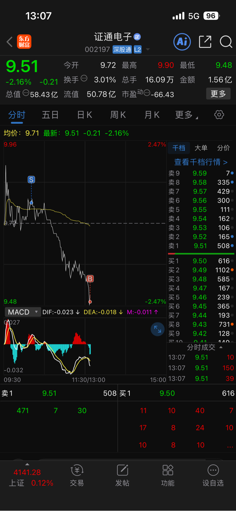$证通电子(SZ002197)$ 做了个T,9.78卖,9.49买