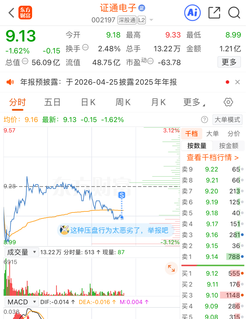 $证通电子(SZ002197)$ 怕了,先走一步
