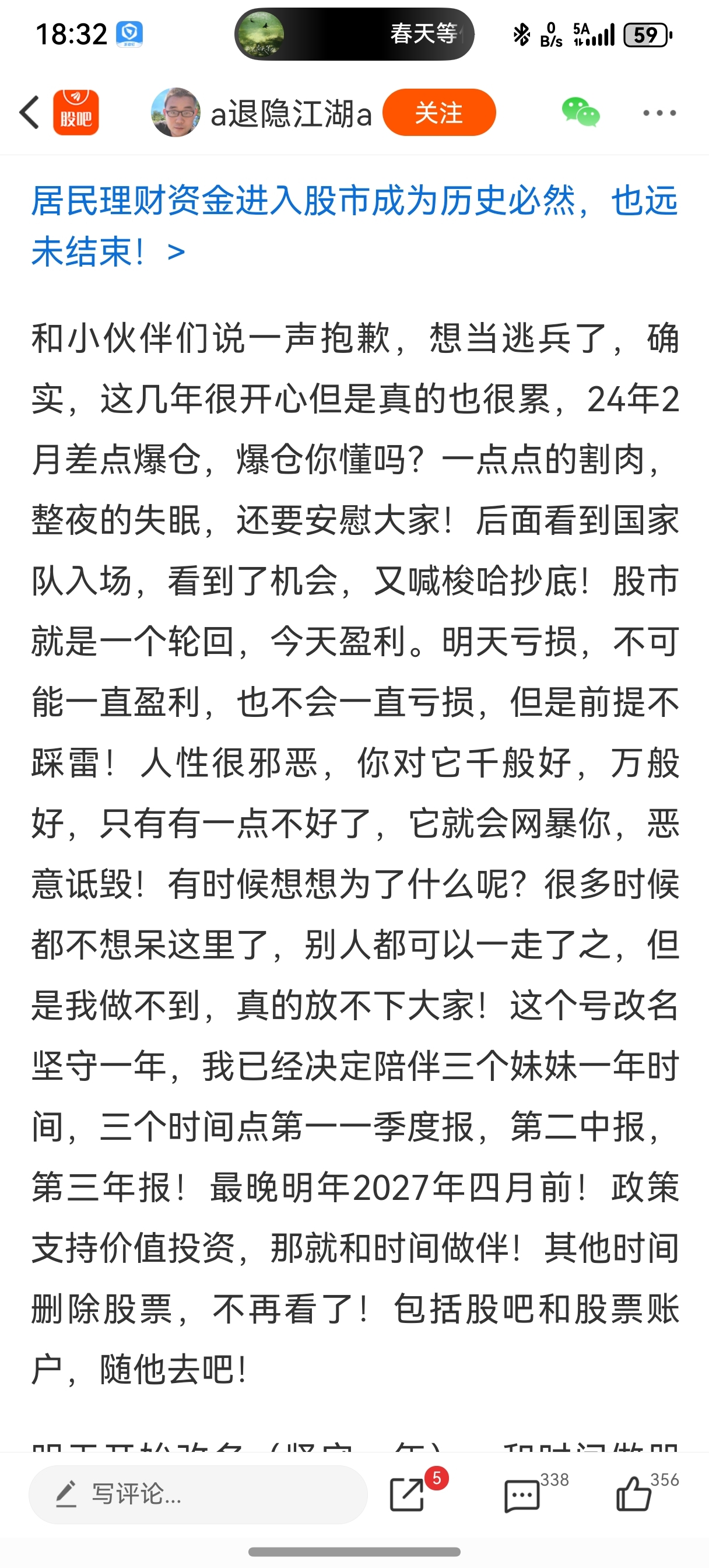 温馨提示: 1.根据《证券法》规定,禁止编造、传播虚假信息或者误导性信息,扰乱证券市场;2.用户在本社区发表的所有资料、言论等仅代表个人观点,与本网站立场无关,不对您构成任何投资建议。用户应基于自己的独立判断,自行决定证券投资并承担相应风险。《东方财富社区管理规定》