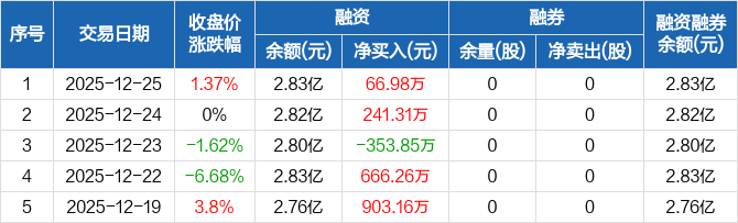 嘉应制药:融资净买入66.98万元,融资余额2.83亿元(12-25)