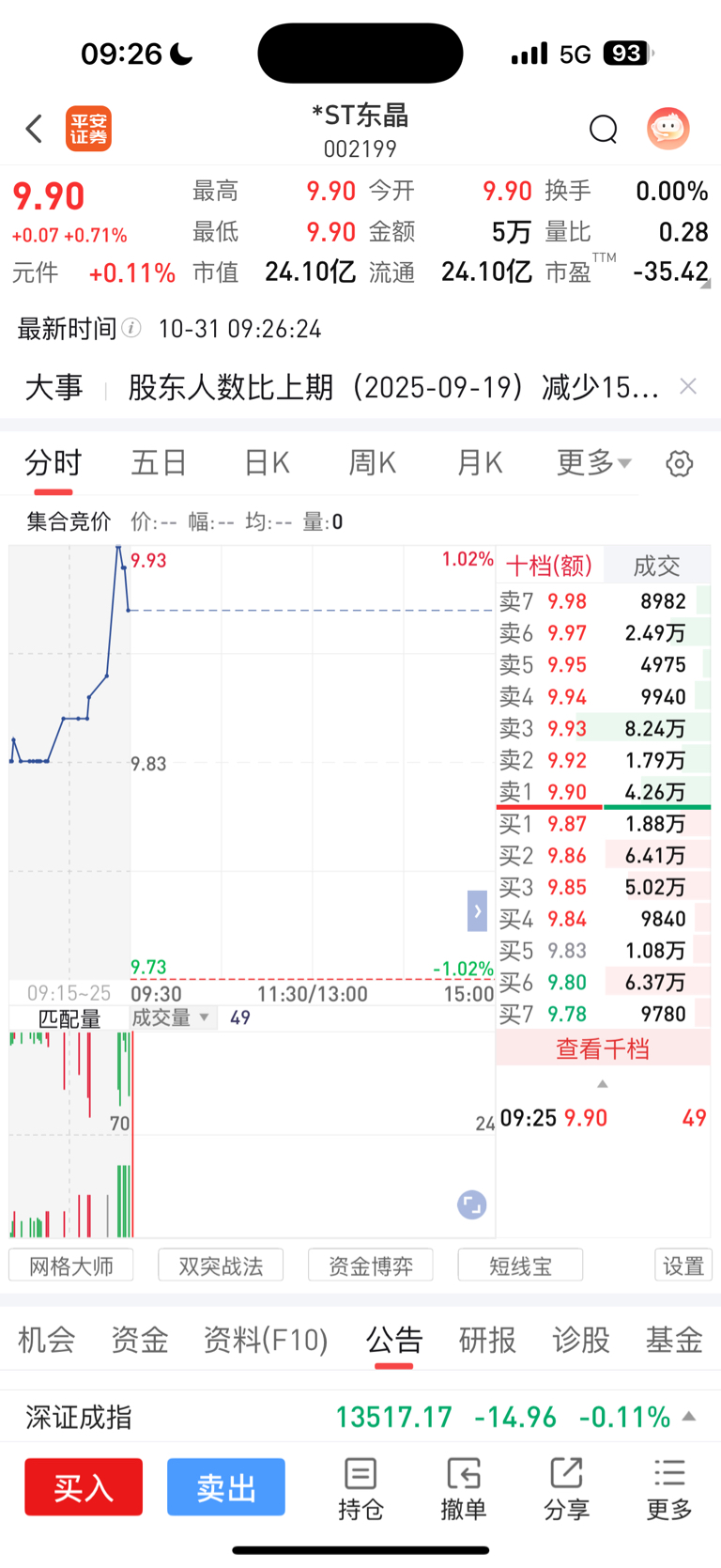 $*ST东晶(SZ002199)$ 历史记录了吧,竞价五万