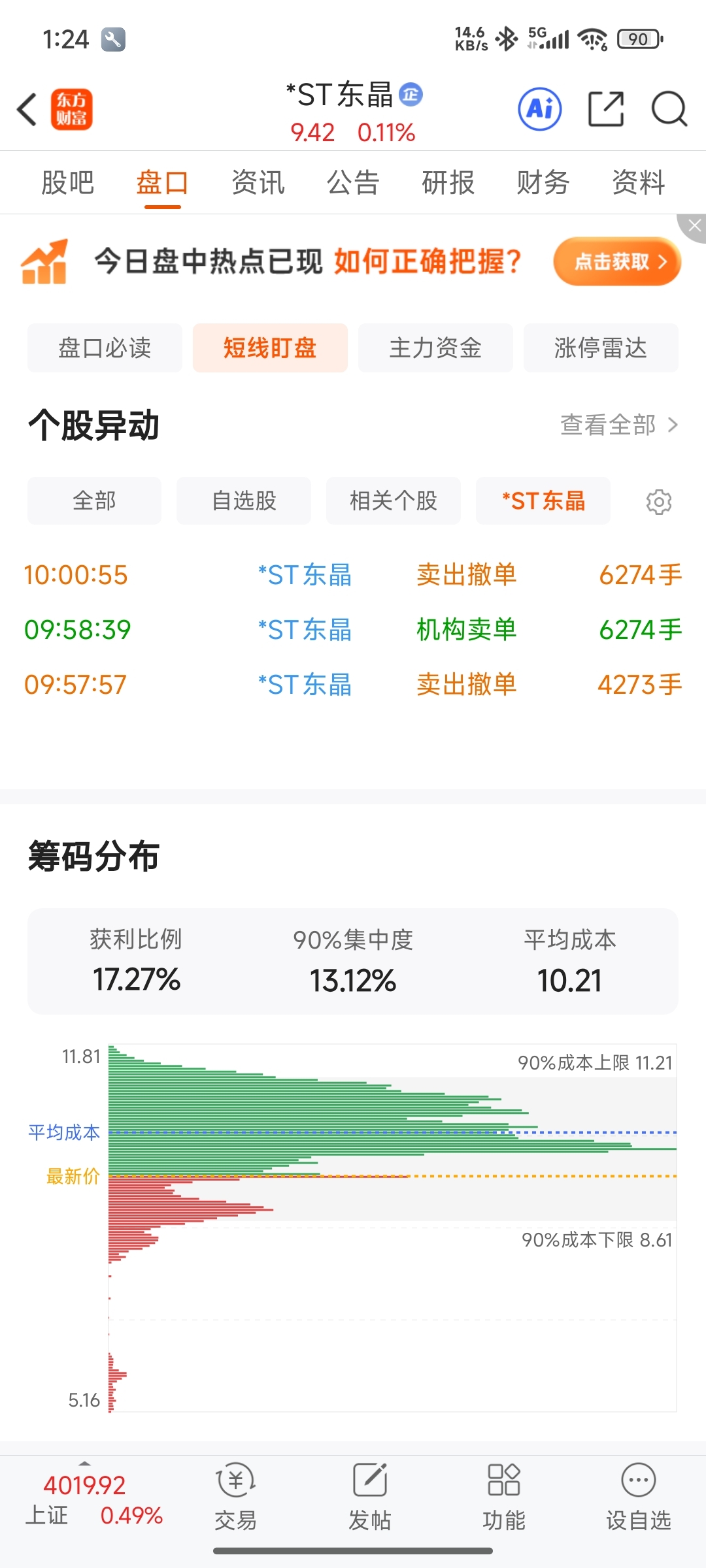 $*ST东晶(SZ002199)$ 我的妈呀,幸好机构和主力撤卖单了,不然得砸成什么样子?谁知道怎么看他撤单的价格?
