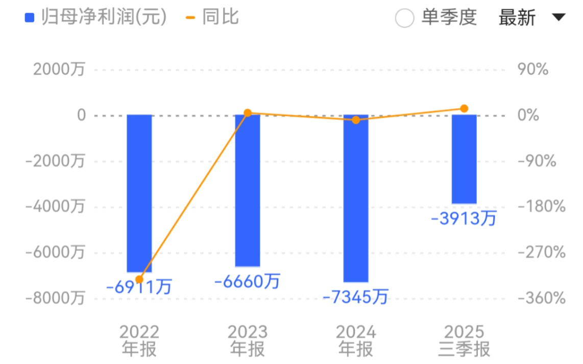 纵观近年业绩,*ST东晶已连续3年度亏损,2025年前三季度延续亏损态势。2022年至2024年,公司归母净亏损分别为6911万元、6660万元、7345万元、3913万元。