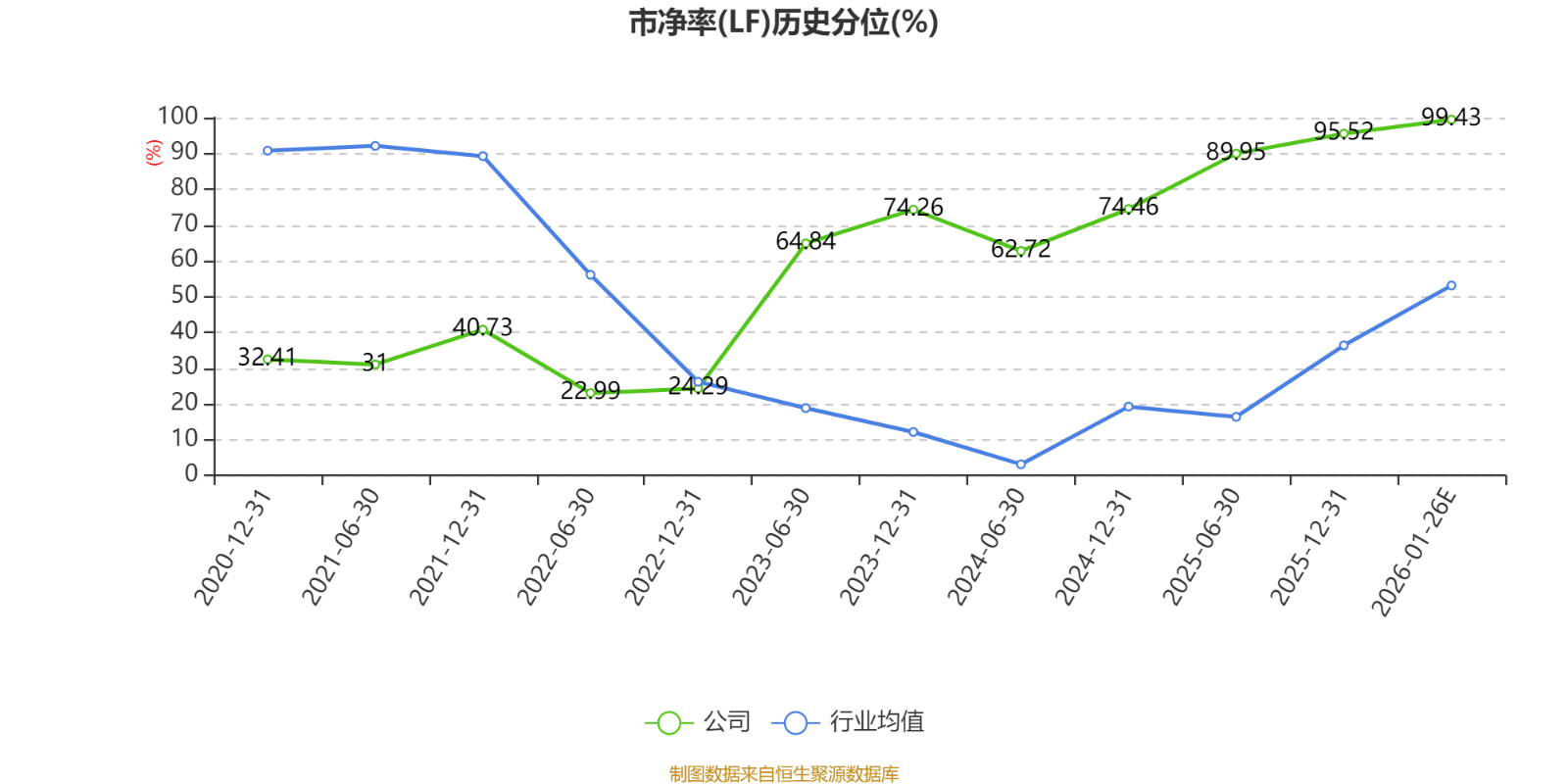 市盈率、市净率为负时,不显示当期分位数,会导致折线图中断。