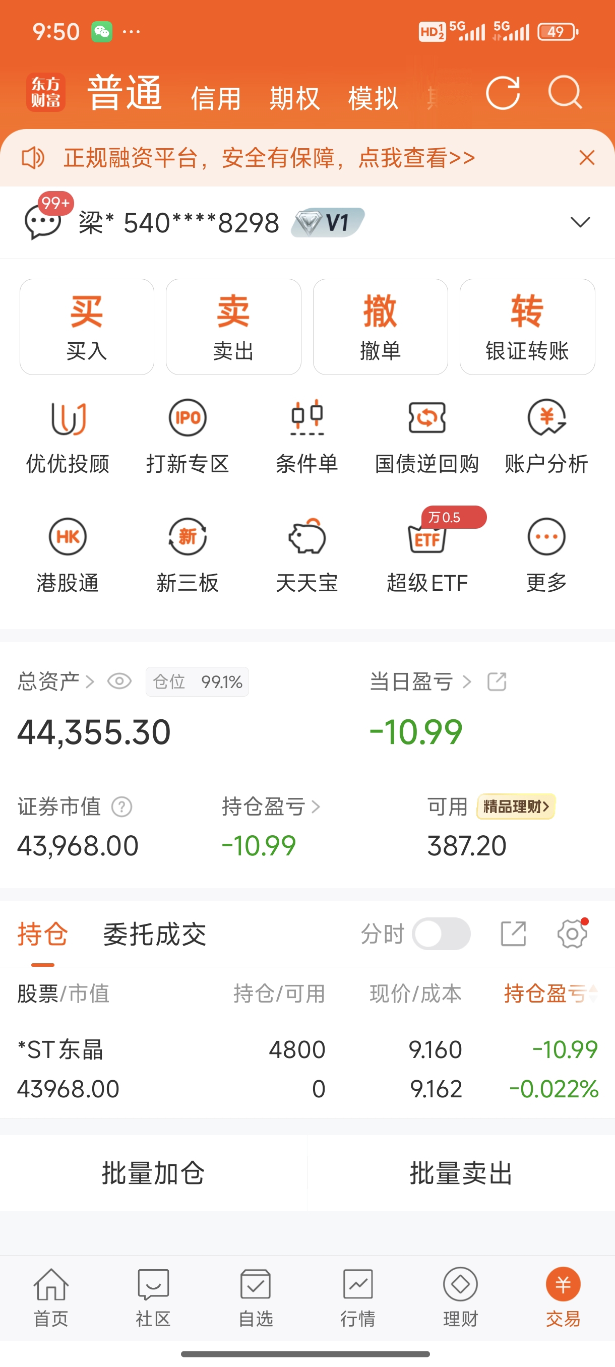 $*ST东晶(SZ002199)$ 昨天贷款了不少,充进去了。