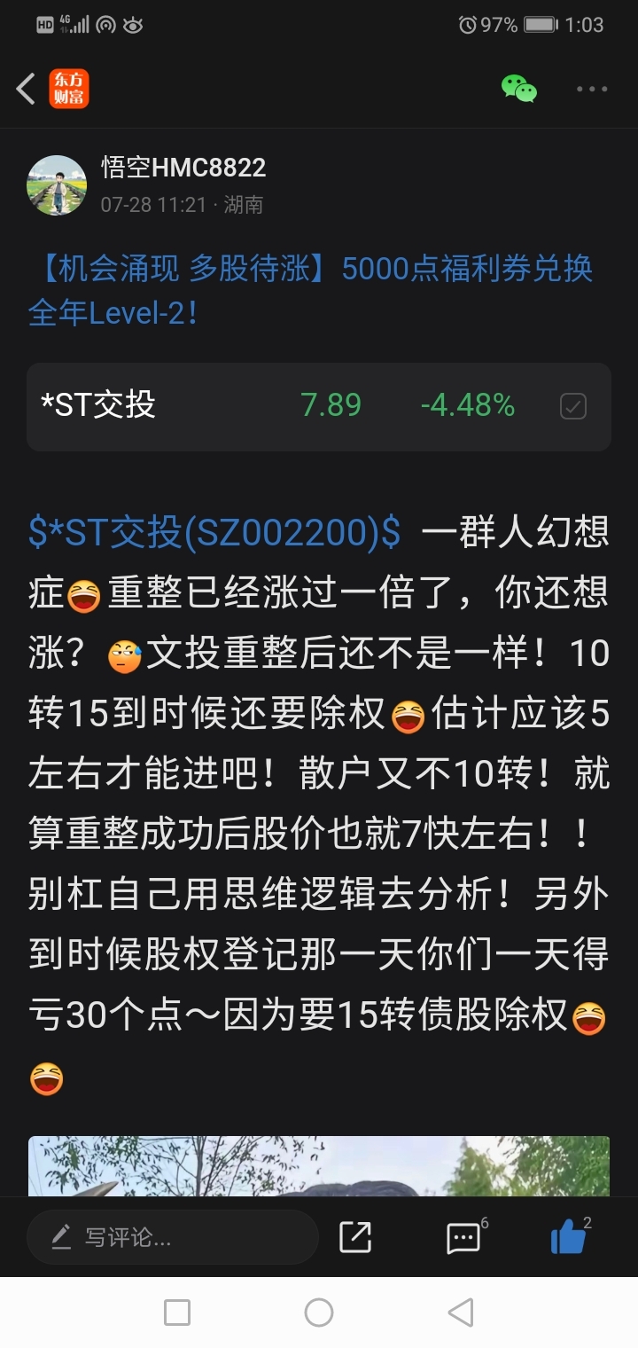 温馨提示: 1.根据《证券法》规定,禁止编造、传播虚假信息或者误导性信息,扰乱证券市场;2.用户在本社区发表的所有资料、言论等仅代表个人观点,与本网站立场无关,不对您构成任何投资建议。用户应基于自己的独立判断,自行决定证券投资并承担相应风险。《东方财富社区管理规定》