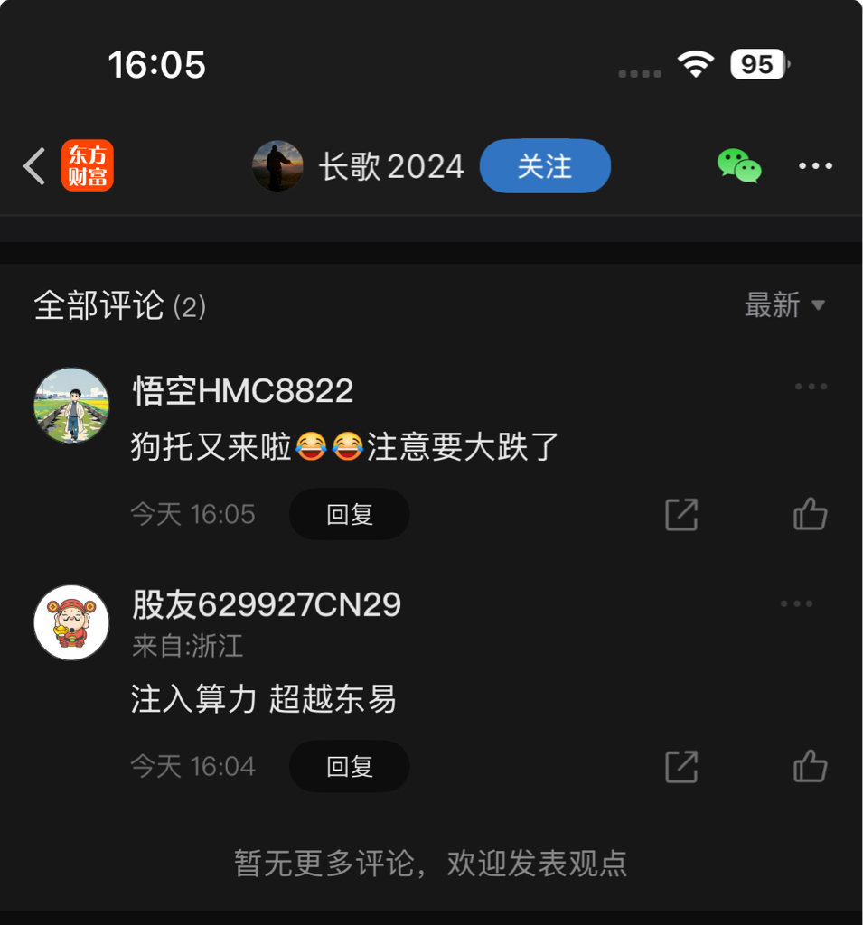 温馨提示: 1.根据《证券法》规定,禁止编造、传播虚假信息或者误导性信息,扰乱证券市场;2.用户在本社区发表的所有资料、言论等仅代表个人观点,与本网站立场无关,不对您构成任何投资建议。用户应基于自己的独立判断,自行决定证券投资并承担相应风险。《东方财富社区管理规定》