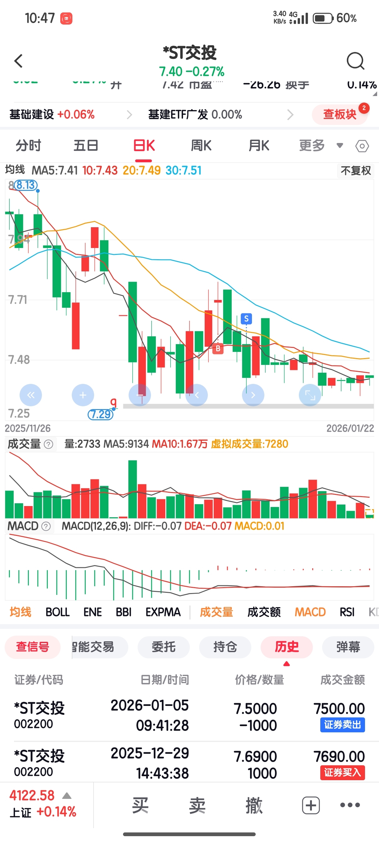 $*ST交投(SZ002200)$ 你是我最近唯一抄底失败的ST票。