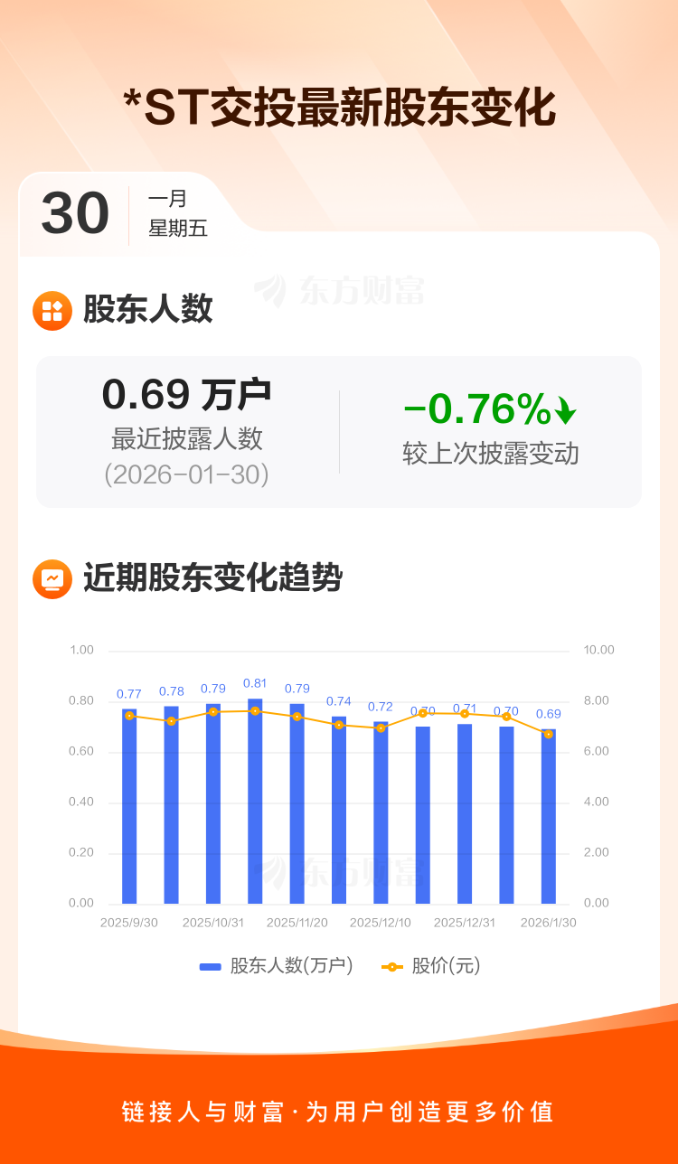 *ST交投:截至1月30日最新股东户数6941户,较上期减少0.76%