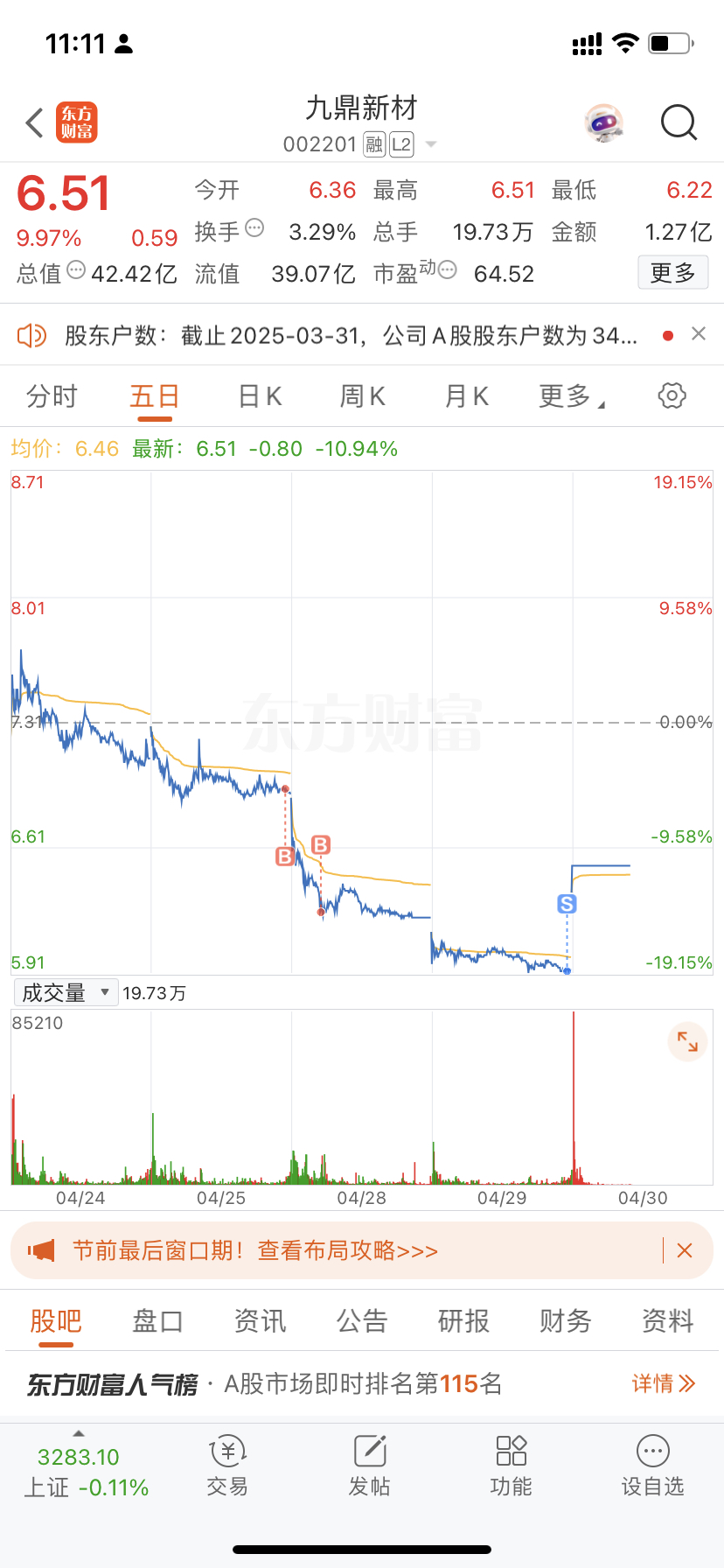 $九鼎新材(SZ002201)$ 你们要谢谢我
