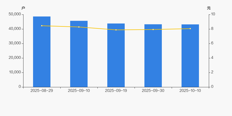 2025年8月29日至今,公司股东户数显著下降,区间跌幅为11.22%。2025年8月29日至2025年10月10日区间股价下降4.73%。
