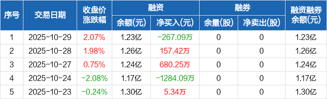 九鼎新材:融资净偿还267.09万元,融资余额1.23亿元(10-29)