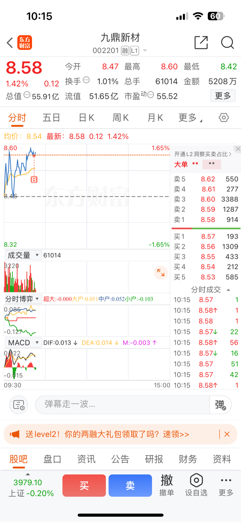 $九鼎新材(SZ002201)$ 来了,给我冲