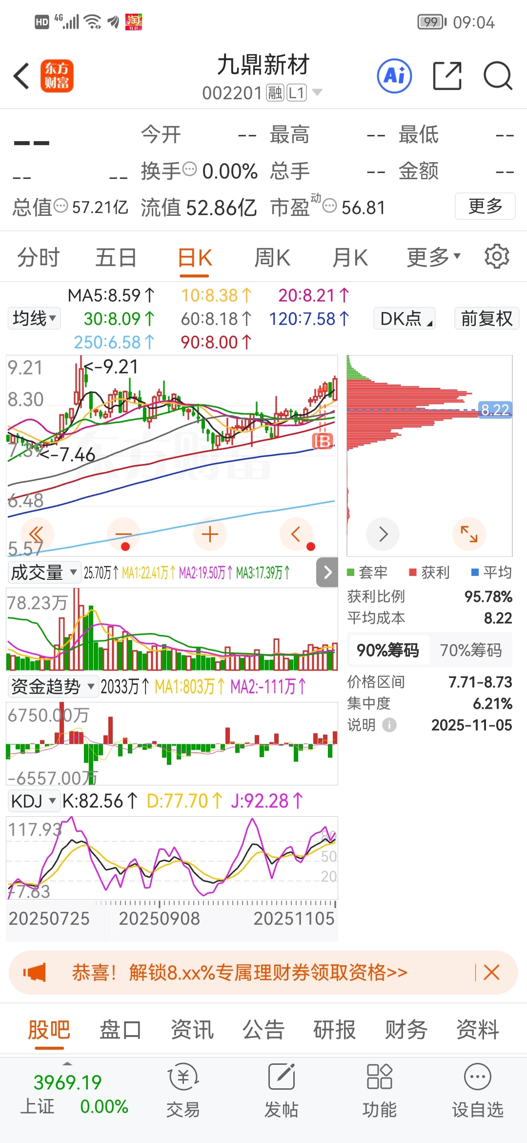$九鼎新材(SZ002201)$ 今天将会尝试触碰9.21附近