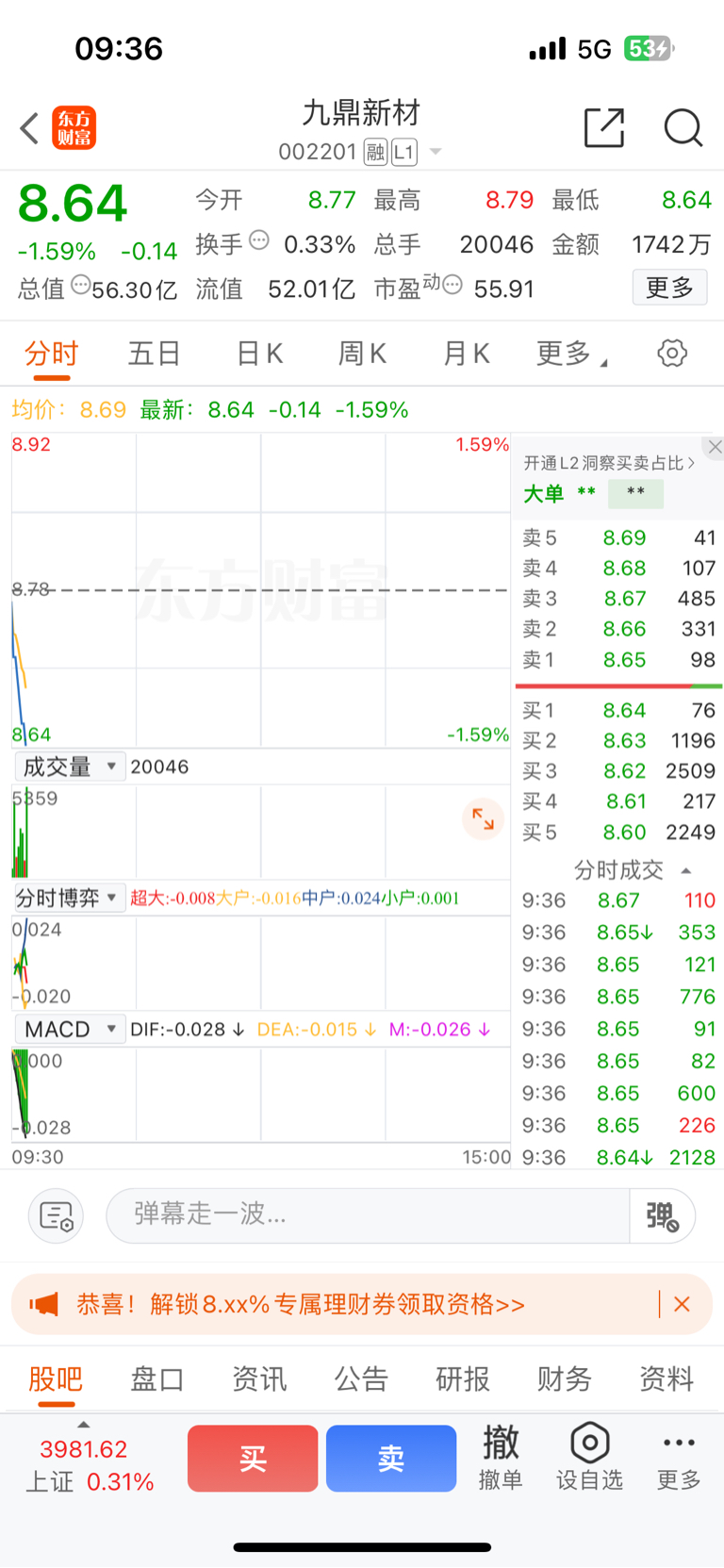 $九鼎新材(SZ002201)$ 把散户洗洗,将会继续向上,进来不少散户