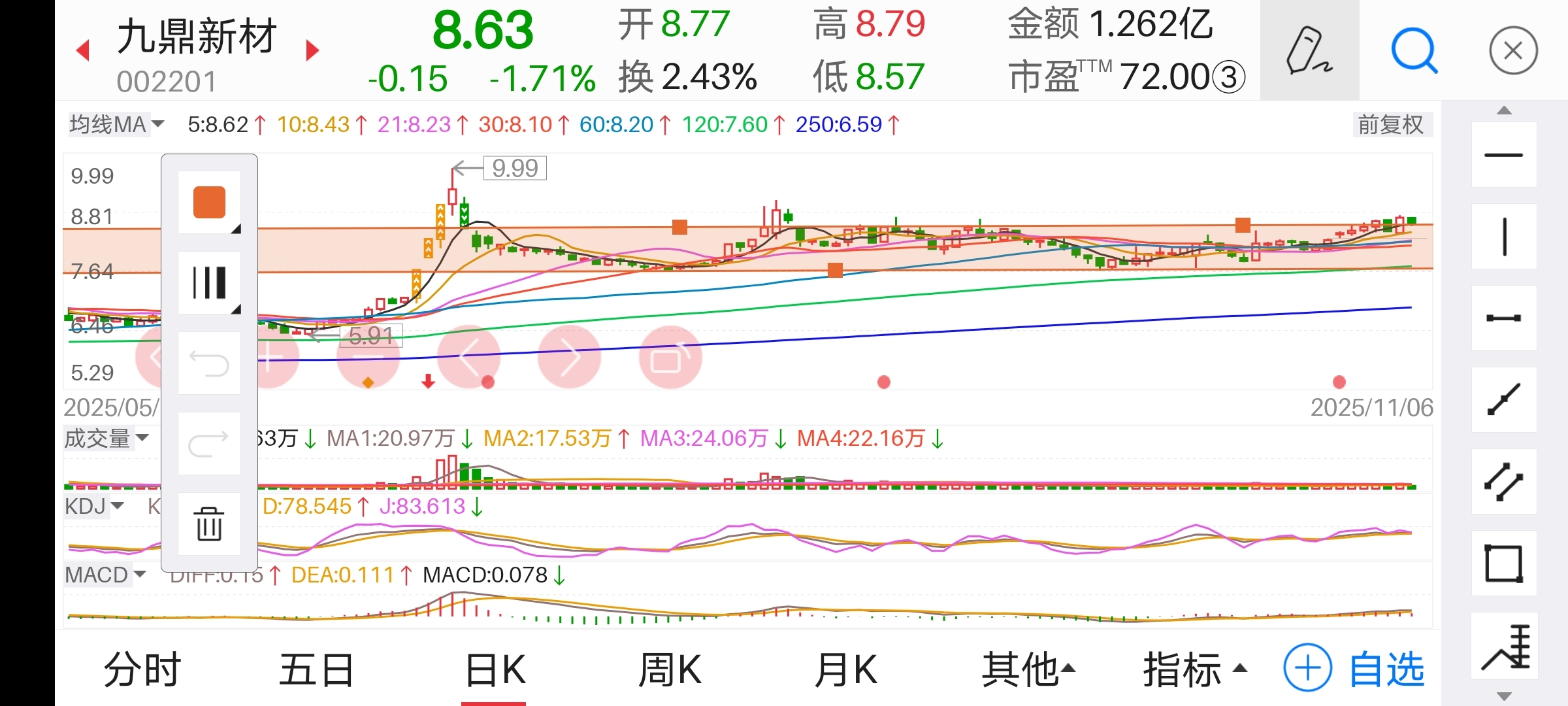 $九鼎新材(SZ002201)$ 箱体的高点和低点我一直画不好,有画的好的师兄,请帮忙纠正一下,谢谢啦!
