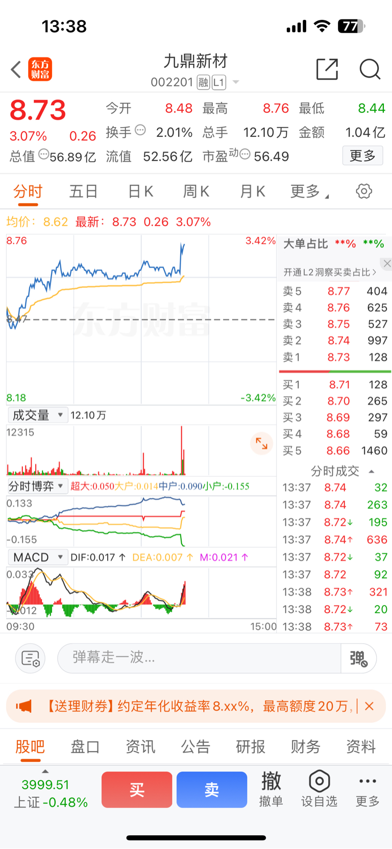 $九鼎新材(SZ002201)$ 三大指数下跌,九鼎反弹拉升,只要这票涨,那群空狗就消失,只要它回调1%,都会被说成世界