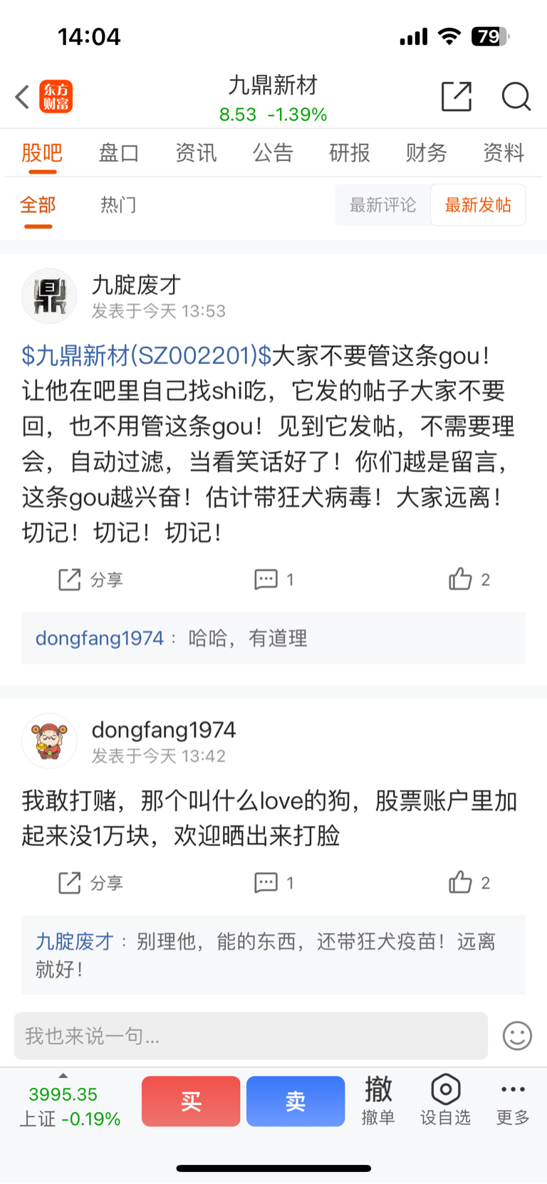 $九鼎新材(SZ002201)$ 这几只狗说打赌不敢直播打赌,还把我问它敢不敢直播打赌的评论删了,真是搞笑,你敢说吃米,田,共,立刻跟你直播来看账户余额