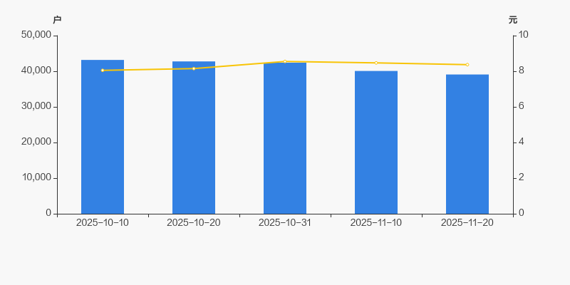 2025年10月10日至今,公司股东户数有所下降,区间跌幅为9.46%。2025年10月10日至2025年11月20日区间股价上涨3.98%。