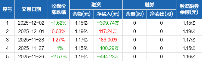 九鼎新材:融资净偿还399.74万元,融资余额1.15亿元(12-02)