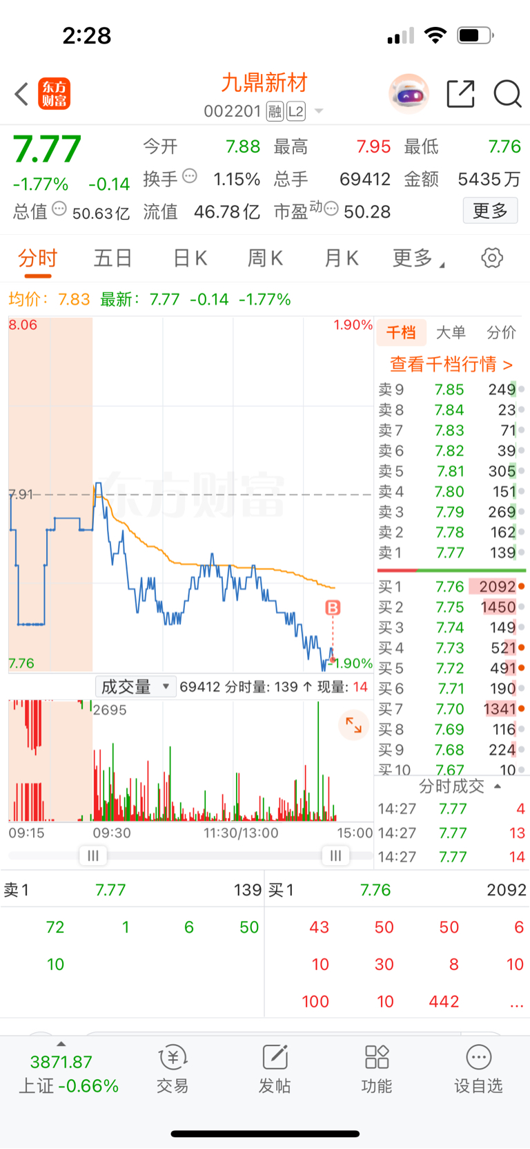 $九鼎新材(SZ002201)$ #实盘记录# 建仓