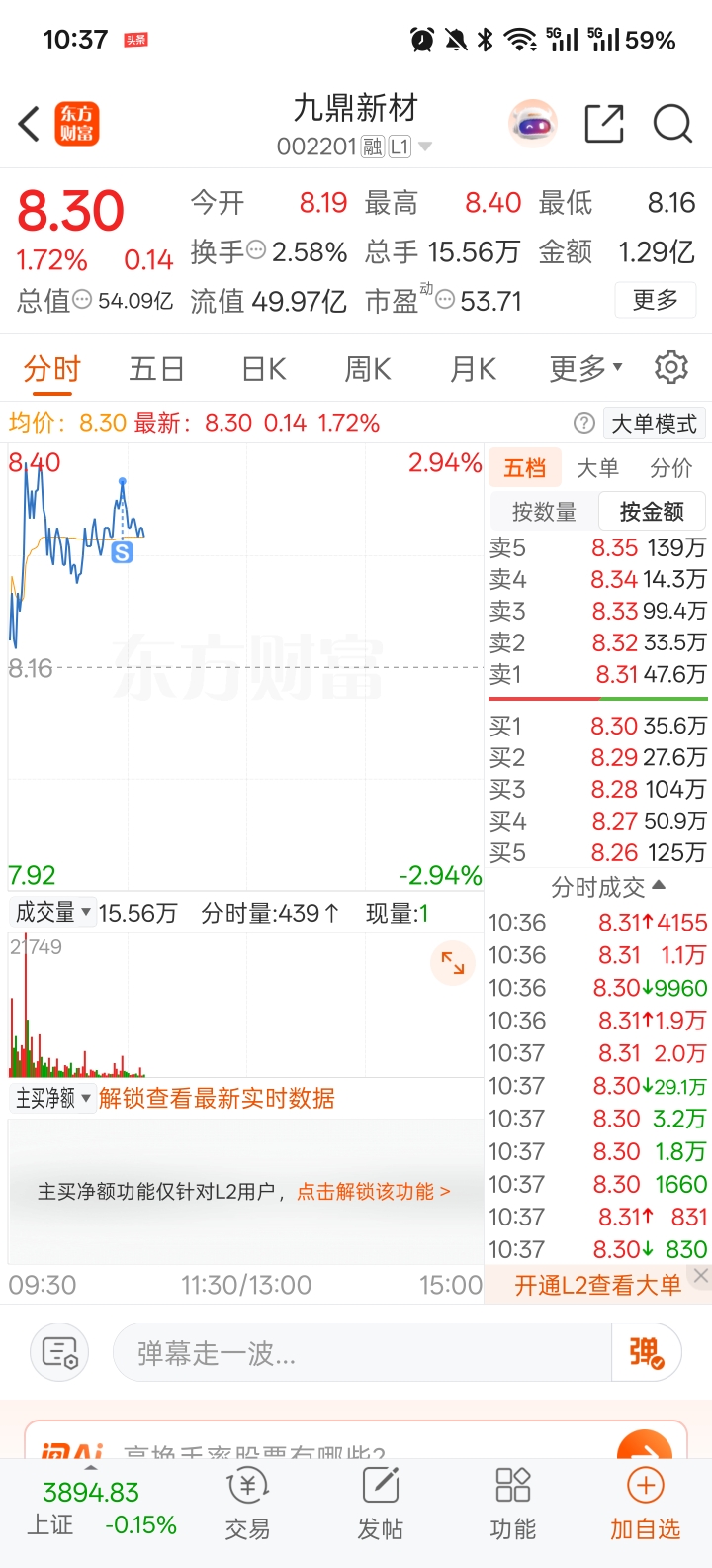 $九鼎新材(SZ002201)$ 清仓走人,下午估计还是得大跳水