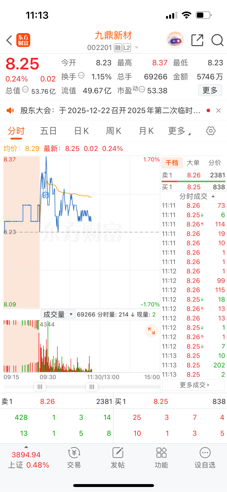 $九鼎新材(SZ002201)$ 还好跑得快,见好就收