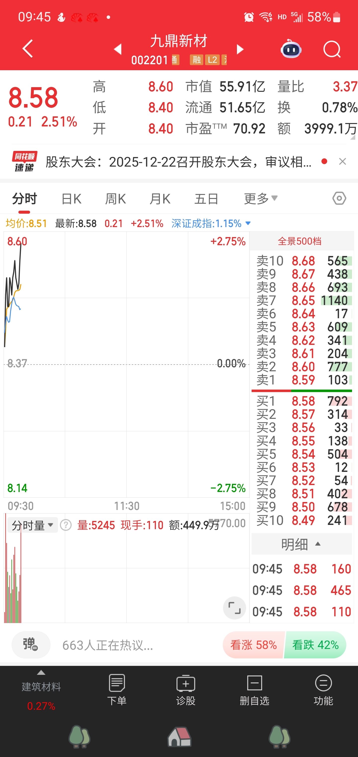 $九鼎新材(SZ002201)$ 火箭发射,今天必突破9,下班不用看了