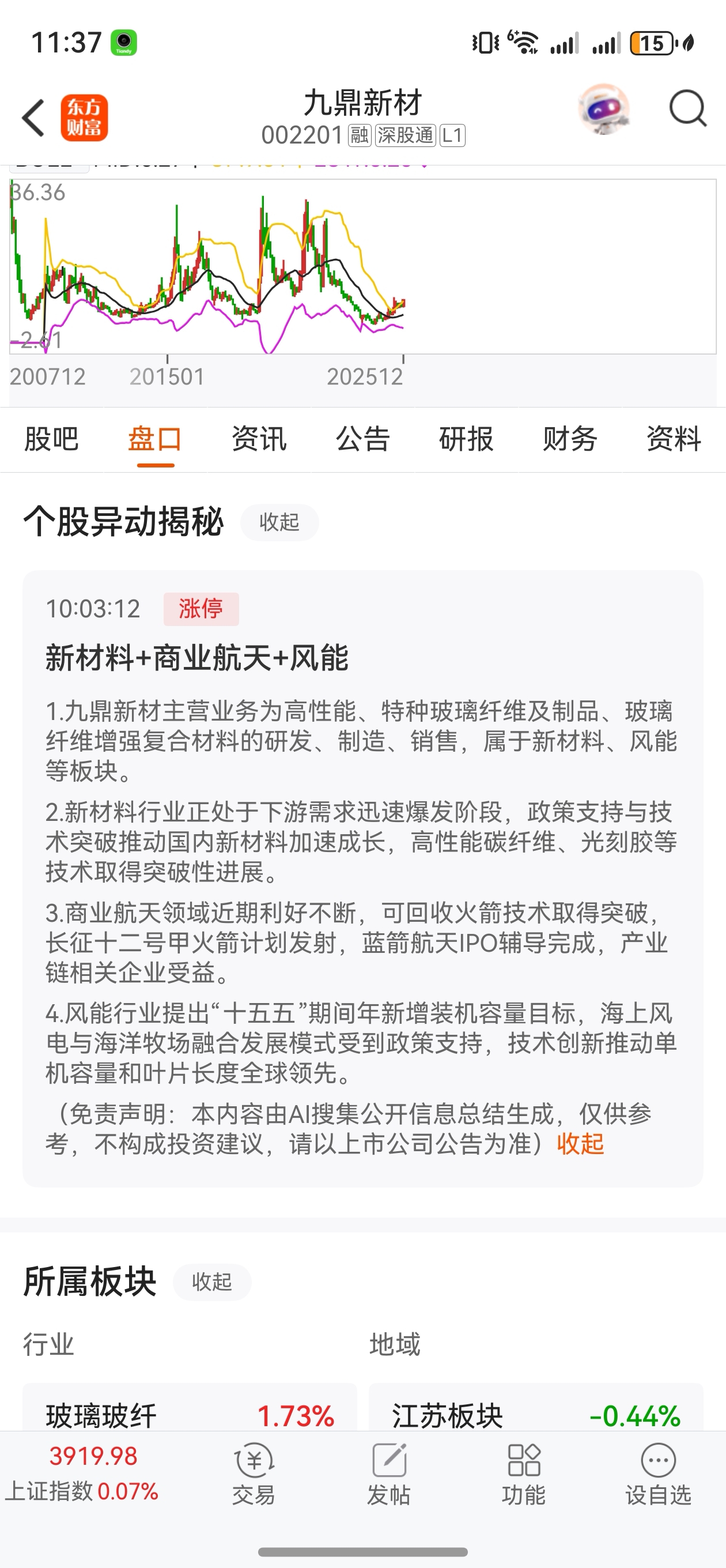 $九鼎新材(SZ002201)$ 可回收火箭技术取得突破