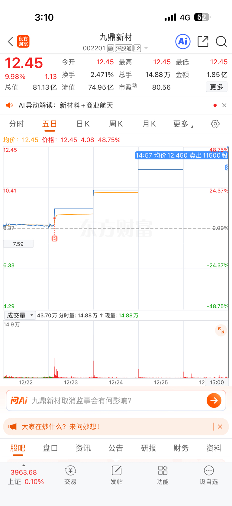 $九鼎新材(SZ002201)$ 不知道走没走对,没砸开我是没想到