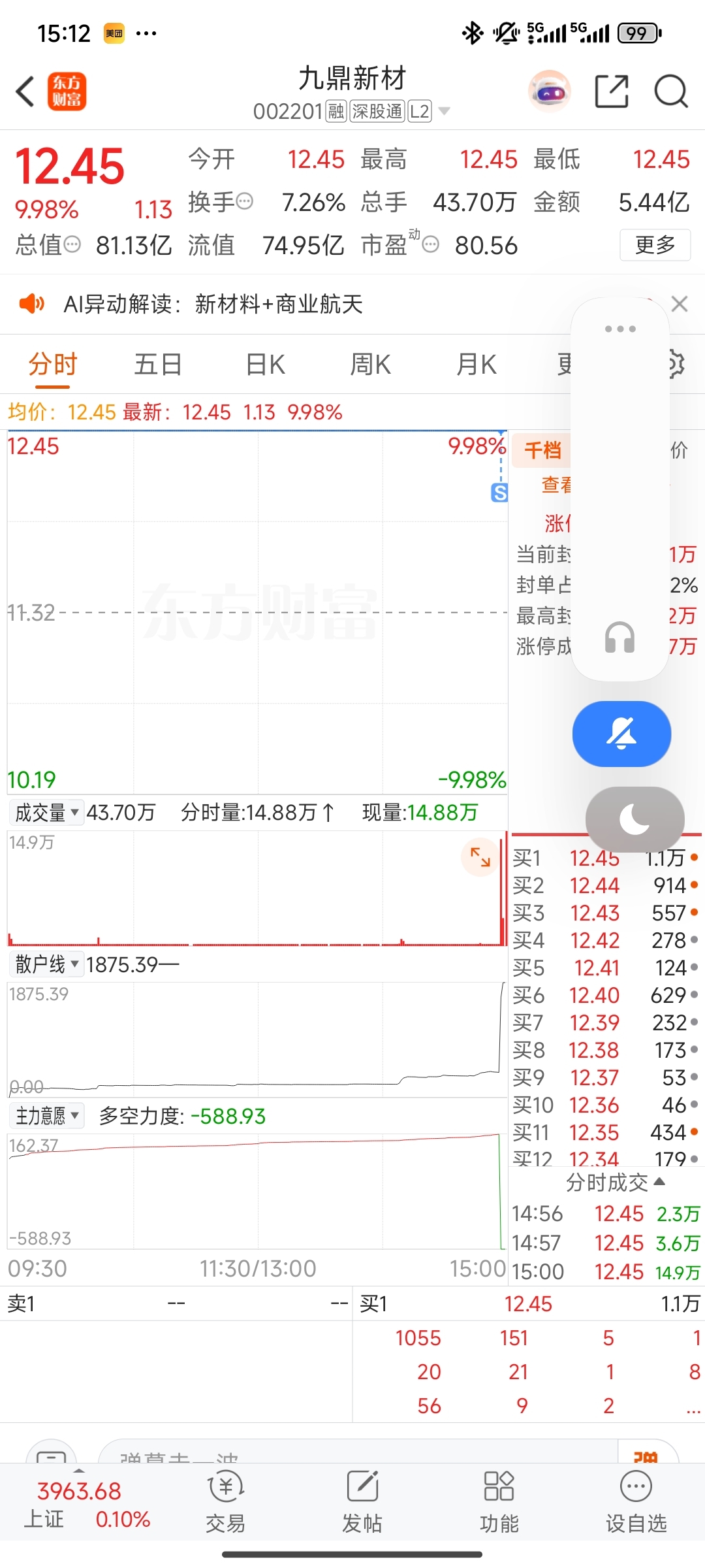 $九鼎新材(SZ002201)$ 跟随主力,尾盘一起跑