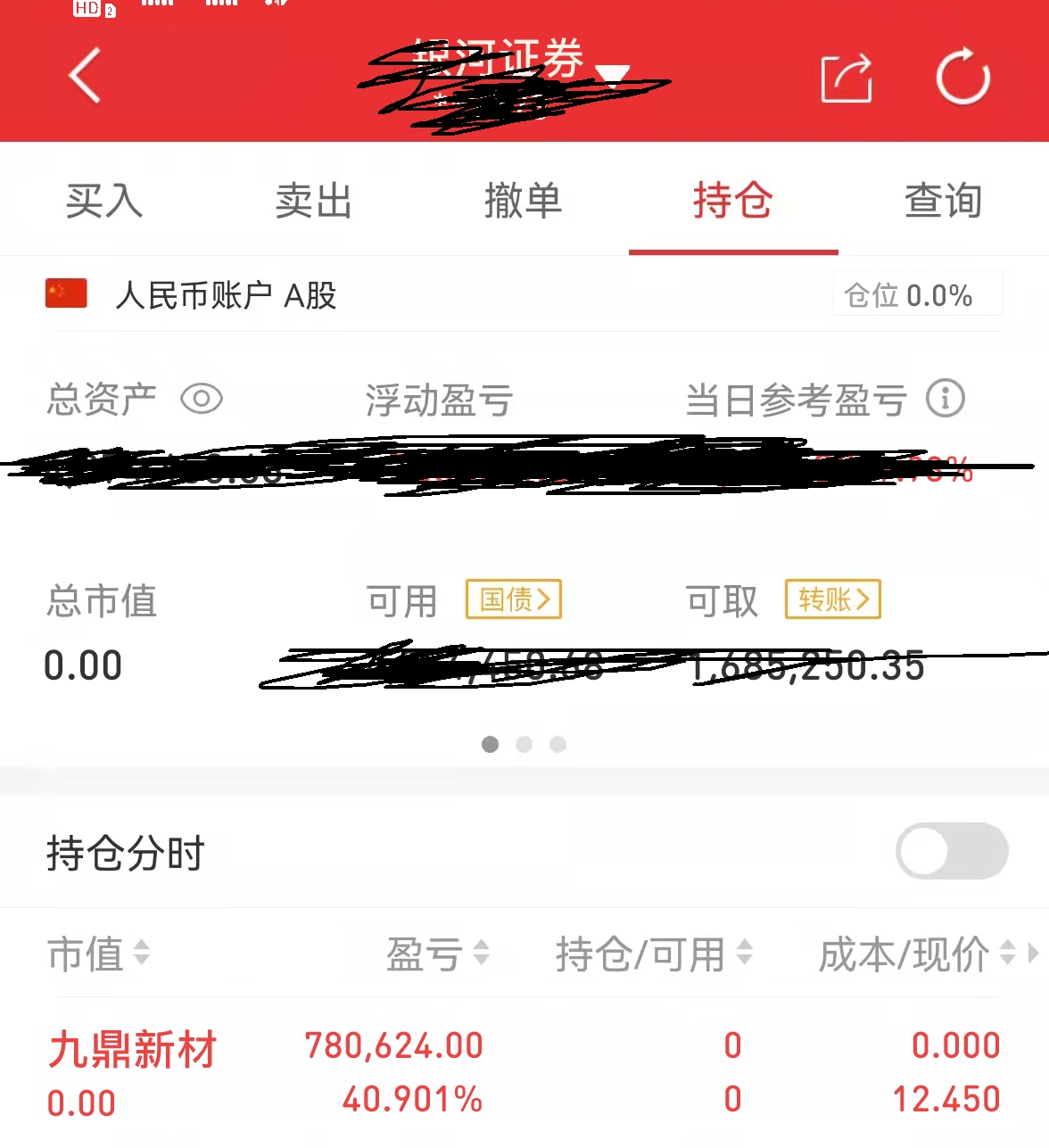 $九鼎新材(SZ002201)$ 周五尾盘竞价的时候全部清仓,我和朋友们都已经清了买在启动前,我认为应该是卖在最高点,不赌最后一口汤,有可能周一早盘低开会上,或者高开结束,但是也有可能周一跌停,我只按技术操作,稳定收益才是最好。 12月份可以赚了100多个 感谢信我的!