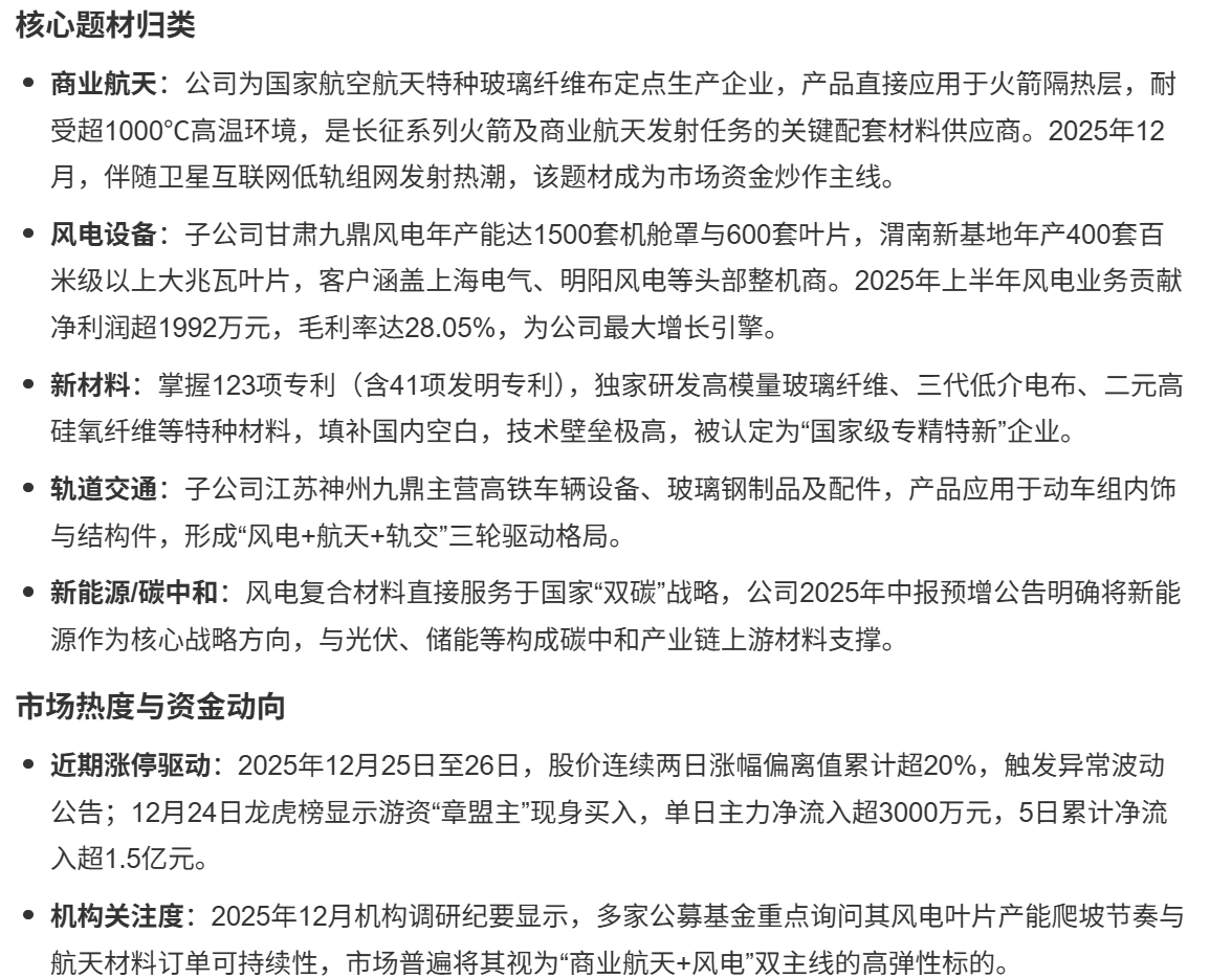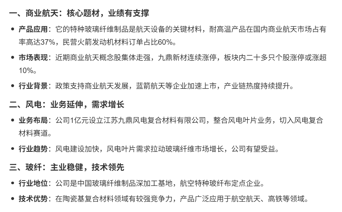 九鼎新材 三大核心题材:商业航天、风电复合材料、航空特种玻纤布!