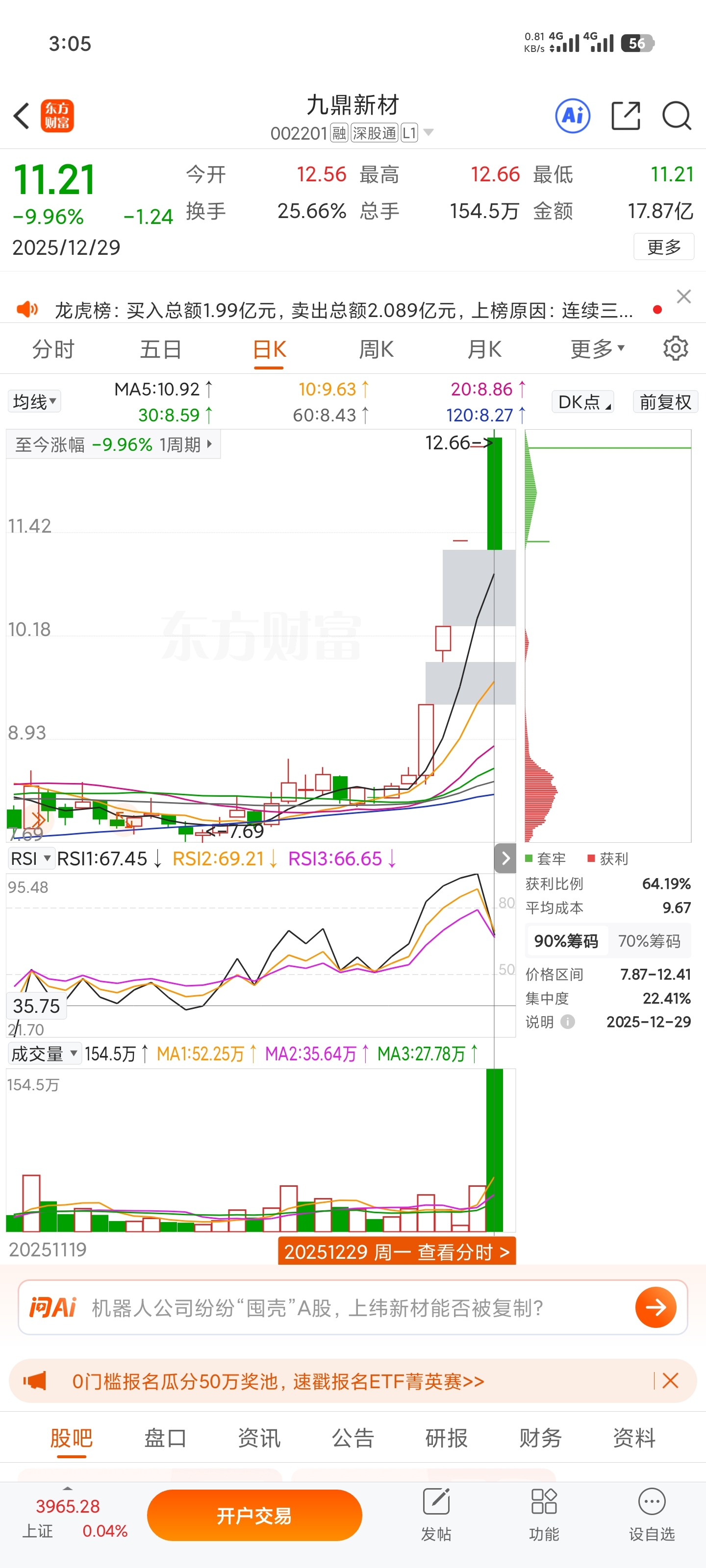 $九鼎新材(SZ002201)$ 补涨中位股四板强转弱,五板就按死了,这大绿棒子,假前不用看了,补仓也得是下周的事情。