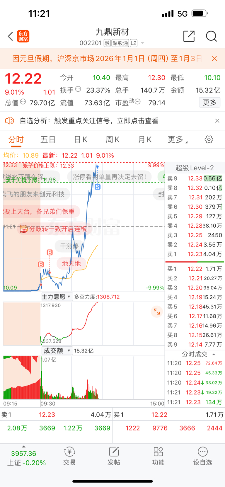 $九鼎新材(SZ002201)$ 又是一次完美的t 明天继续高打高举,制造火箭的重点材料怕j毛