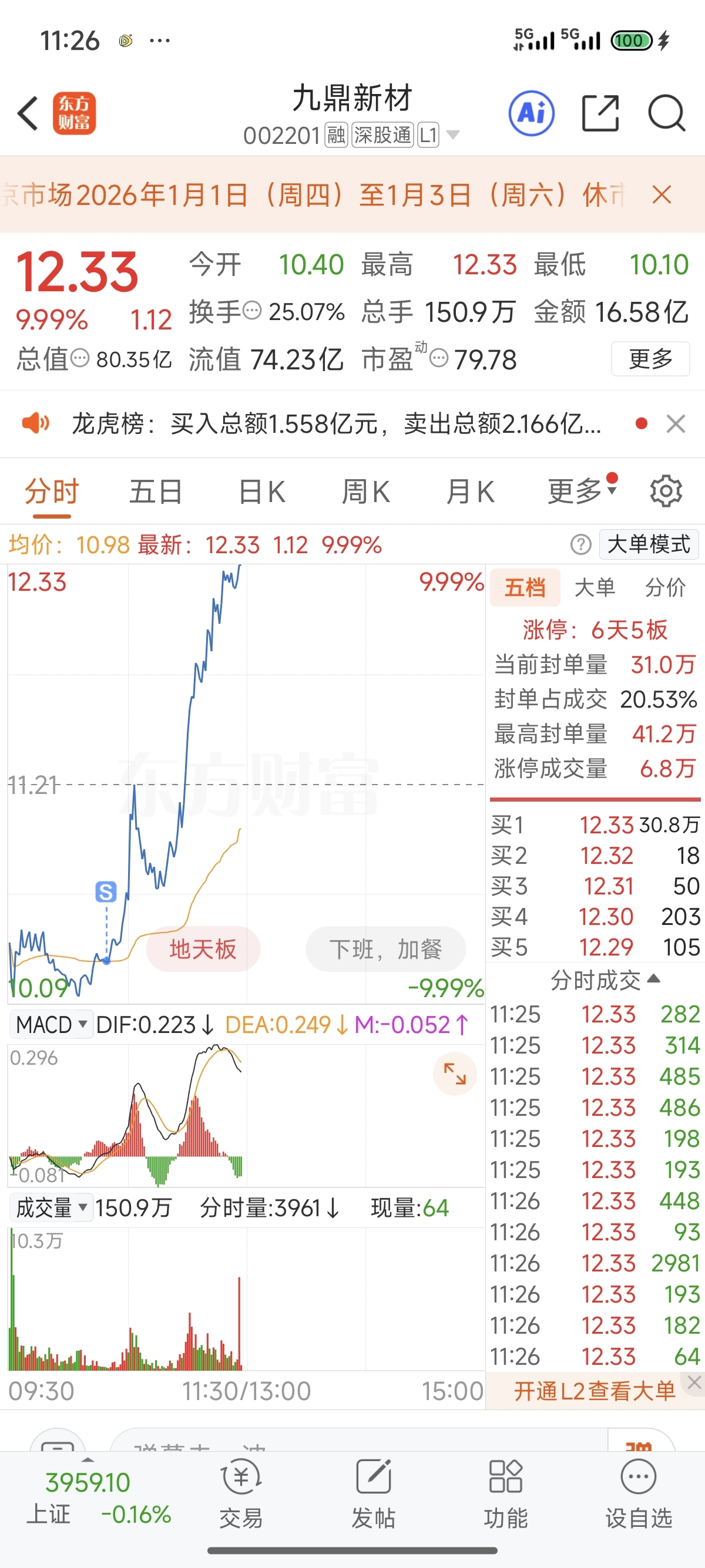 $九鼎新材(SZ002201)$ 炒股啥都能遇到,好消息,第一次买到地天板;坏消息,地板卖掉了 心脏都不舒服了